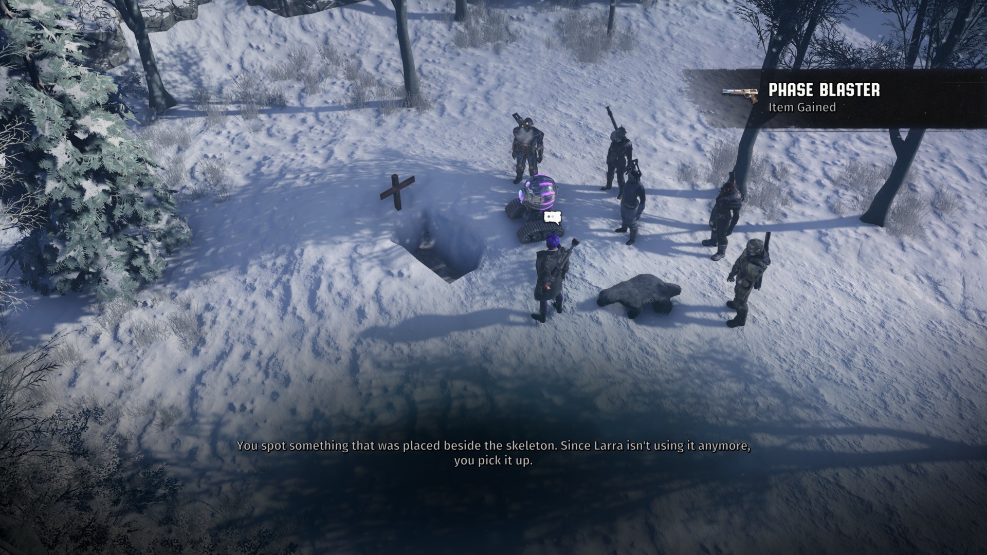 You’ll get the Phase Blaster if you visit Larra’s grave with Victory Buchanan tagging along. Plus, he’ll have some additional comments.