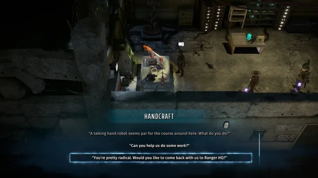 - There’s a talking table called Handcraft. This table “bro” will help you with crafting items and the character who talks to him will get the “Helping Hand” perk (+1 weapon modding and armor modding). You can also tell Handcraft to go to Ranger HQ to help with your crafting needs.