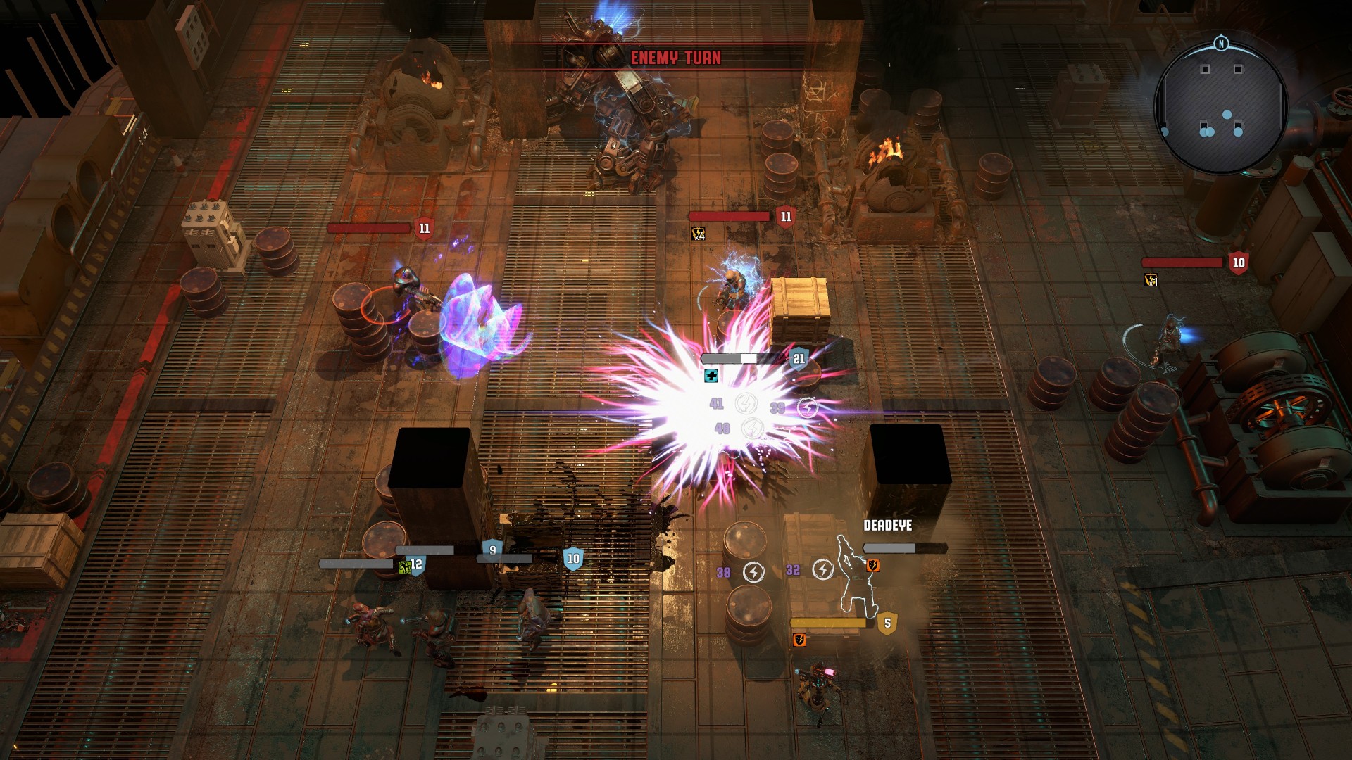 Likewise, you’ll notice stacking effects such as Tar (making units vulnerable to fire damage and explosions). There are also weapons that can apply elemental shields. You’ll need to use a particular element (i.e., fire, cold, or energy blasts/disruption) to remove a target’s shield before it can take damage.
