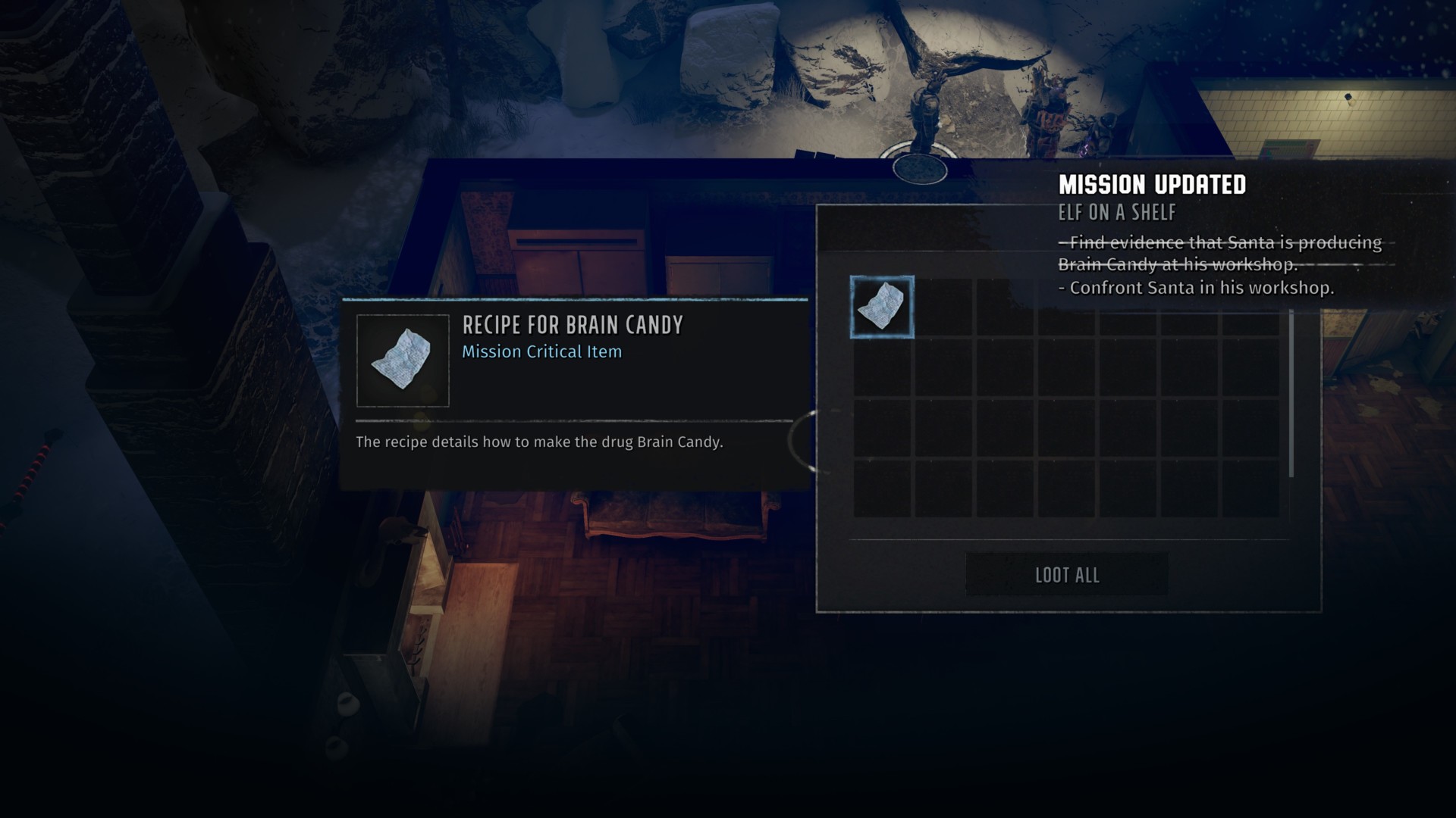 Santa will go “ho-ho-holy shit” thanks to your surprise arrival. Sugarplum Mary, the elf who contacted you, says she can’t talk while Santa’s close, so go tell him that you smell cookies.