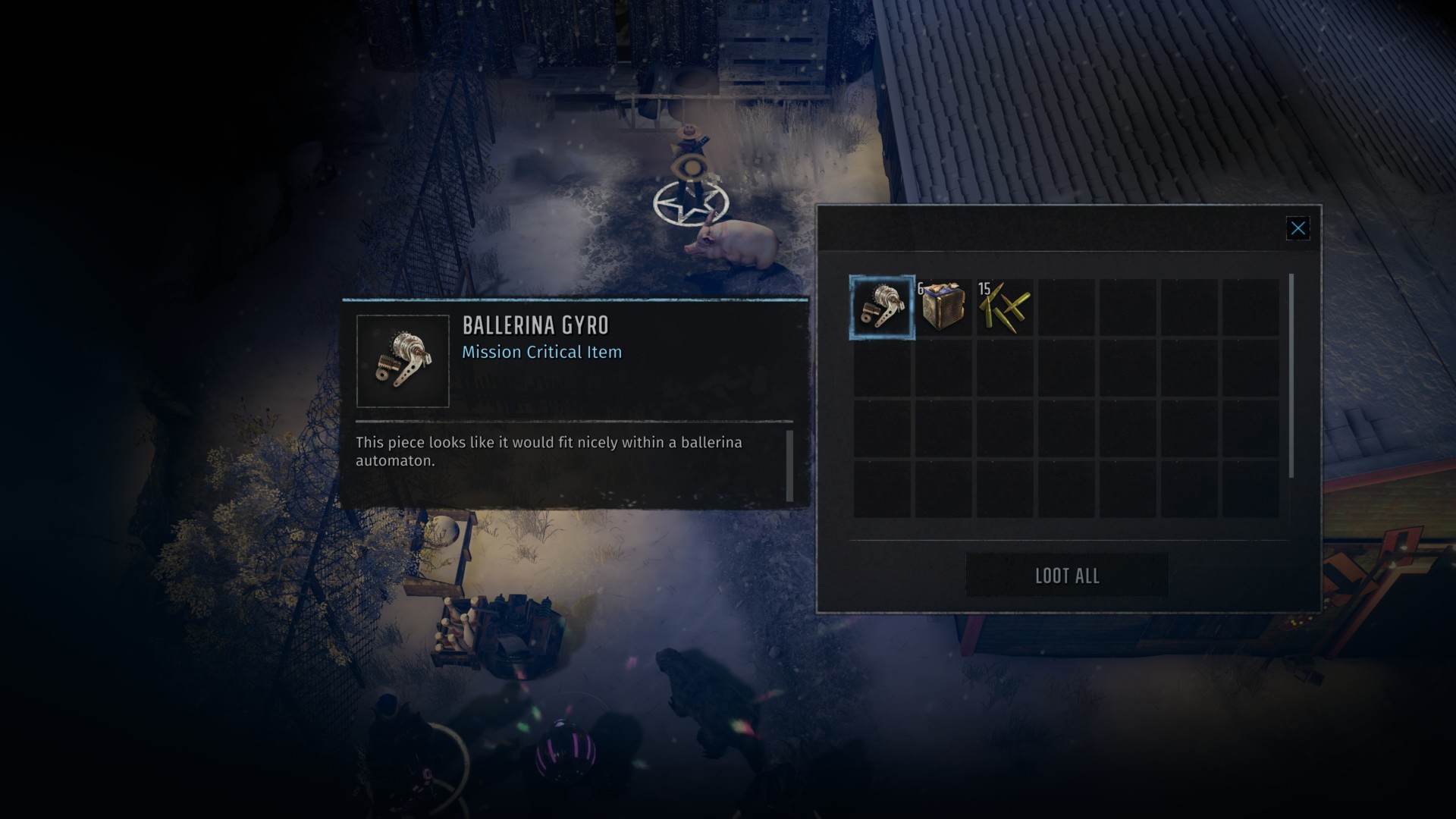 In any case, you’ll notice that the Payaso gang member dropped a Ballerina Gyro. Well, our short-term goal is to find three more of these.