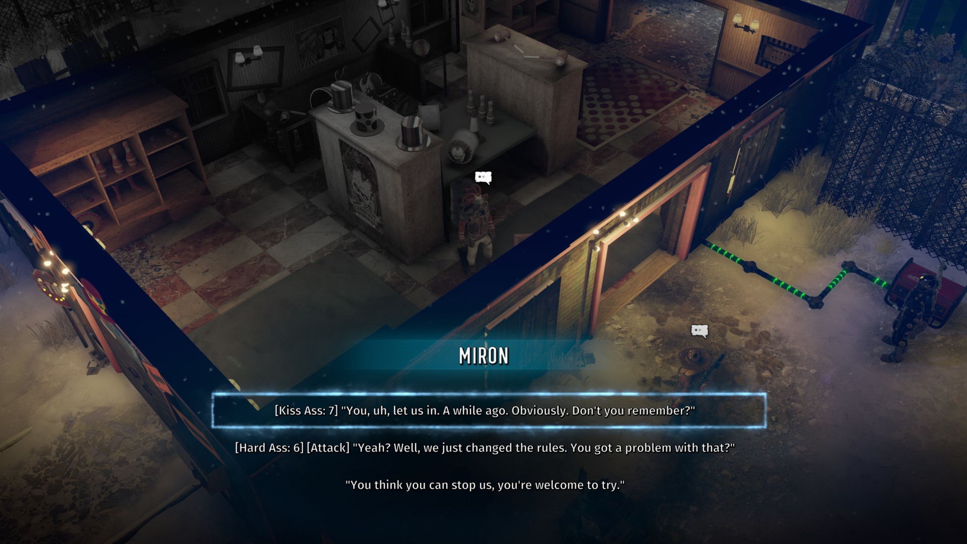 If you use the side entrance (Lockpicking 8 then Mechanics 9), you also need to use Kiss Ass 7 or Hard Ass 6 against Miron.
