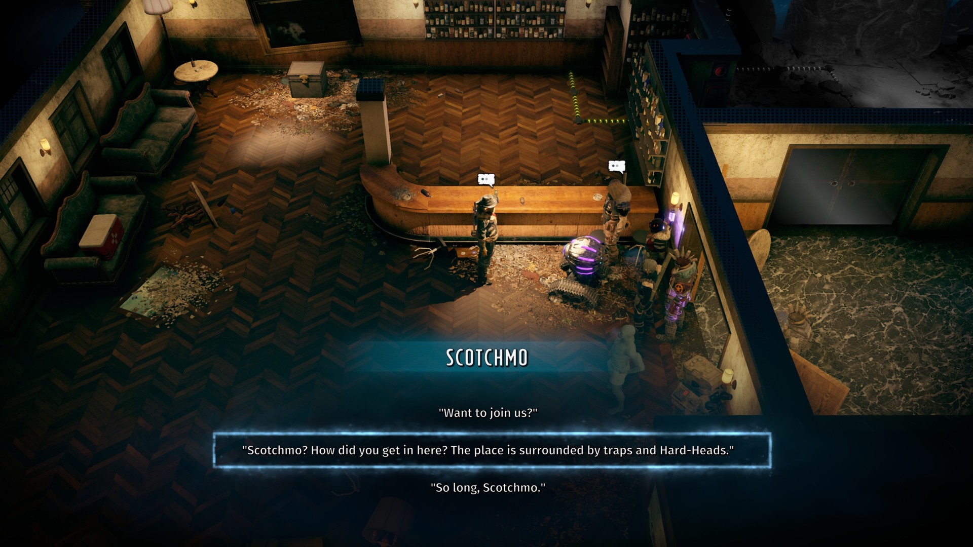Head to the western side of the building (Explosives 7) and you’ll find Scotchmo lounging at the bar. How odd.