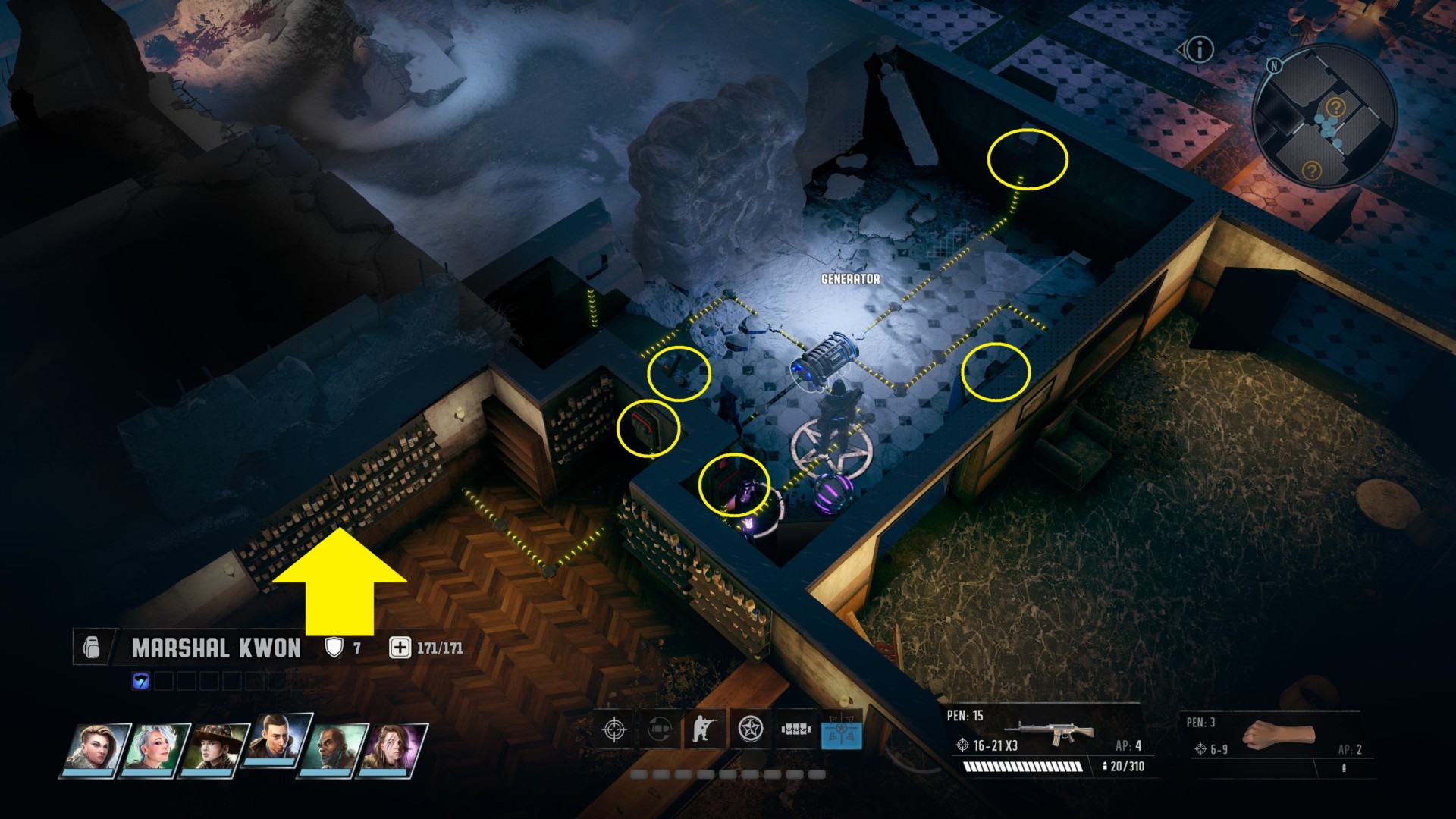 The small room has a generator (Mechanics 9) and your goal is to activate all the switches on the walls.