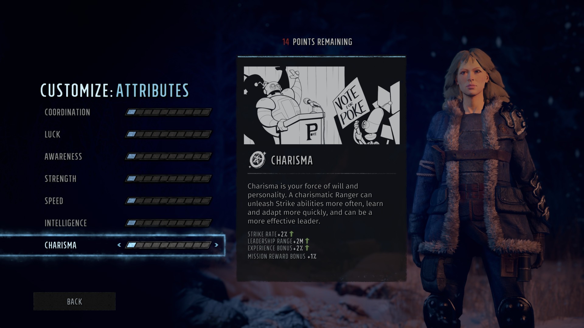 Still, having high INT early on allows custom Rangers to become specialists in a variety of functions (and crit more often too). But, in general, COO will surpass this due to the action points you get. You could assign a few points into this when creating a new character, then just leave it as is while progressing further in Wasteland 3.