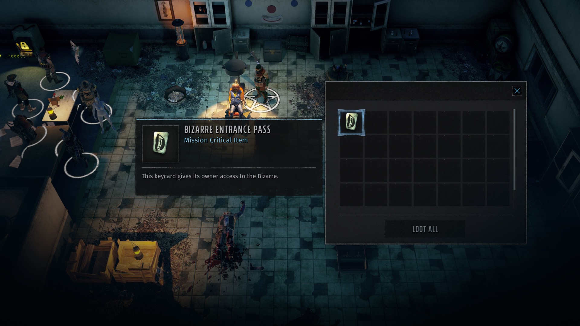 The victim’s corpse has The Bizarre Entrance Pass quest item (in case you haven’t gotten one yet).