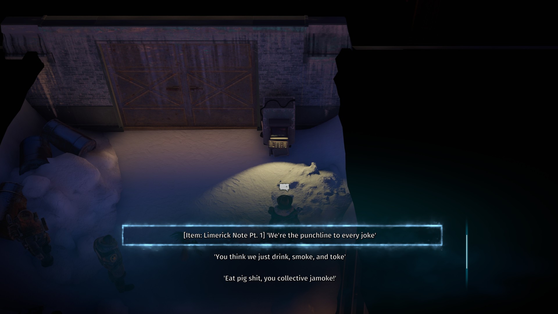 Limerick Note Pt. 3 is looted from one of the dead Payasos in the “playground” area (the one with the spinning carousel with spikes).