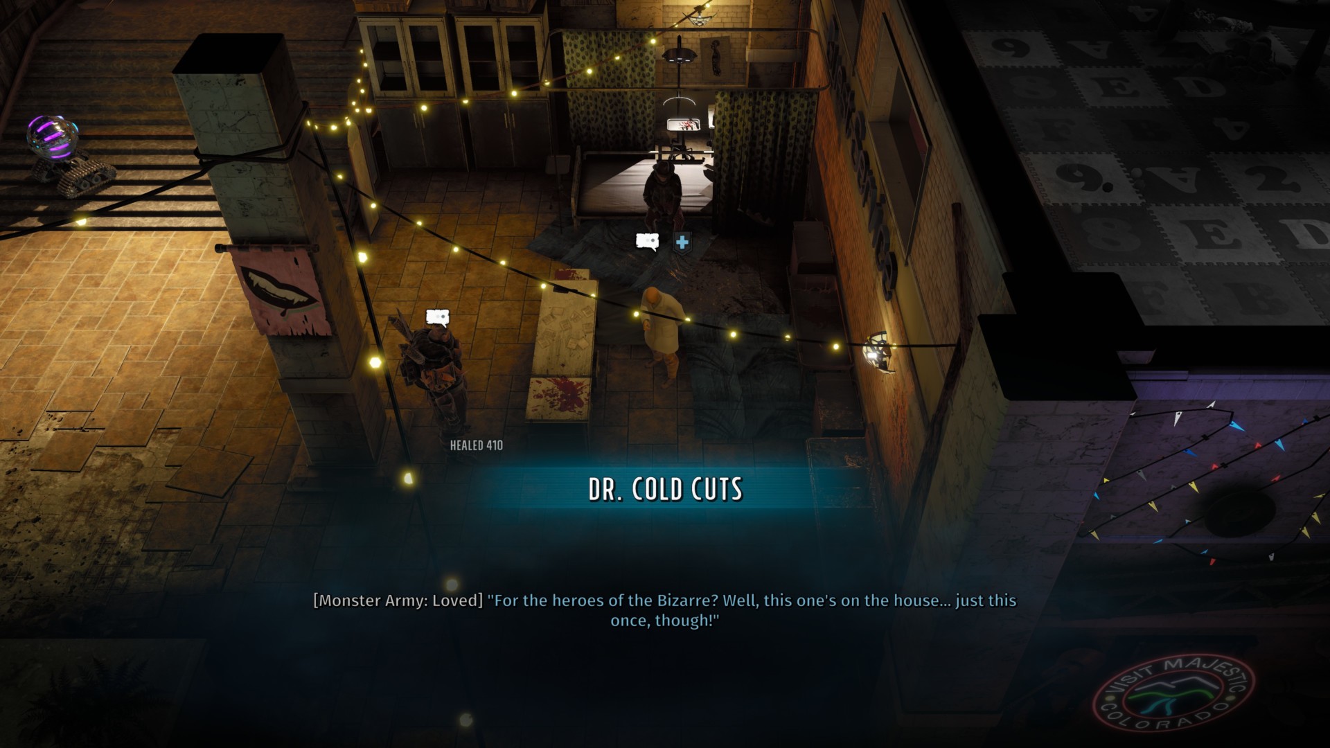 Well, Eidilon wants you to find movie reels in the Monster Army Bunker. Meanwhile, Randy Gett wants you to help him with some troubles in Gett Family Homestead. The Bizarre’s vendors will also have discounts; even the doctor will heal you for free (only once, though).