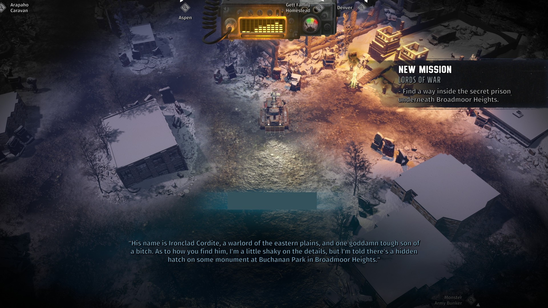 Important: Your task is to rescue a prisoner — Ironclad Cordite — who’s being held in the Old Survivalist Bunker. Having him in your squad will drastically alter the final 1/3 of your Wasteland 3 campaign.