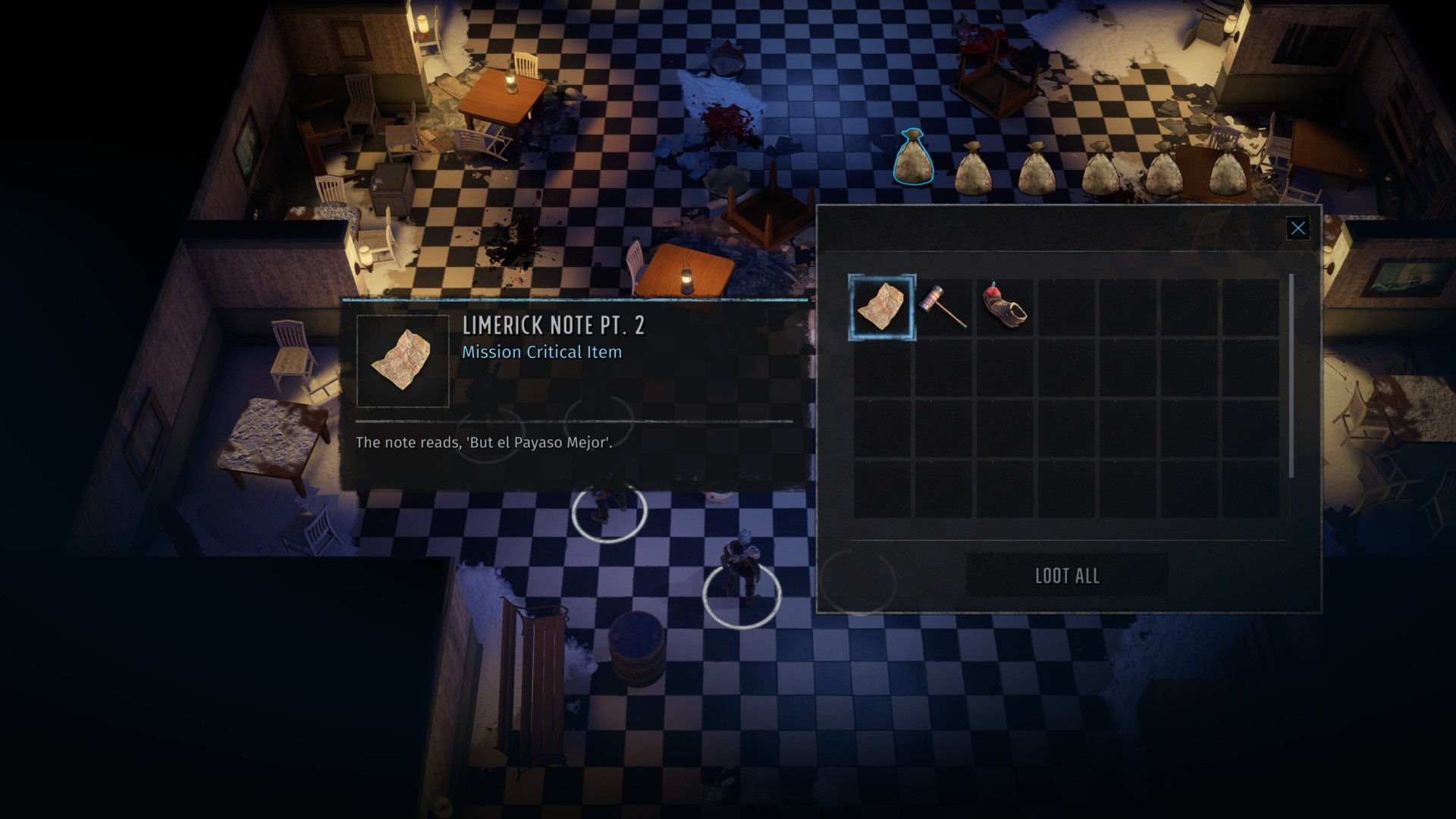 The dining room will lead to a battle against more Payasos. One of them drops Limerick Note Pt. 2 and the Clown Hammer melee weapon.