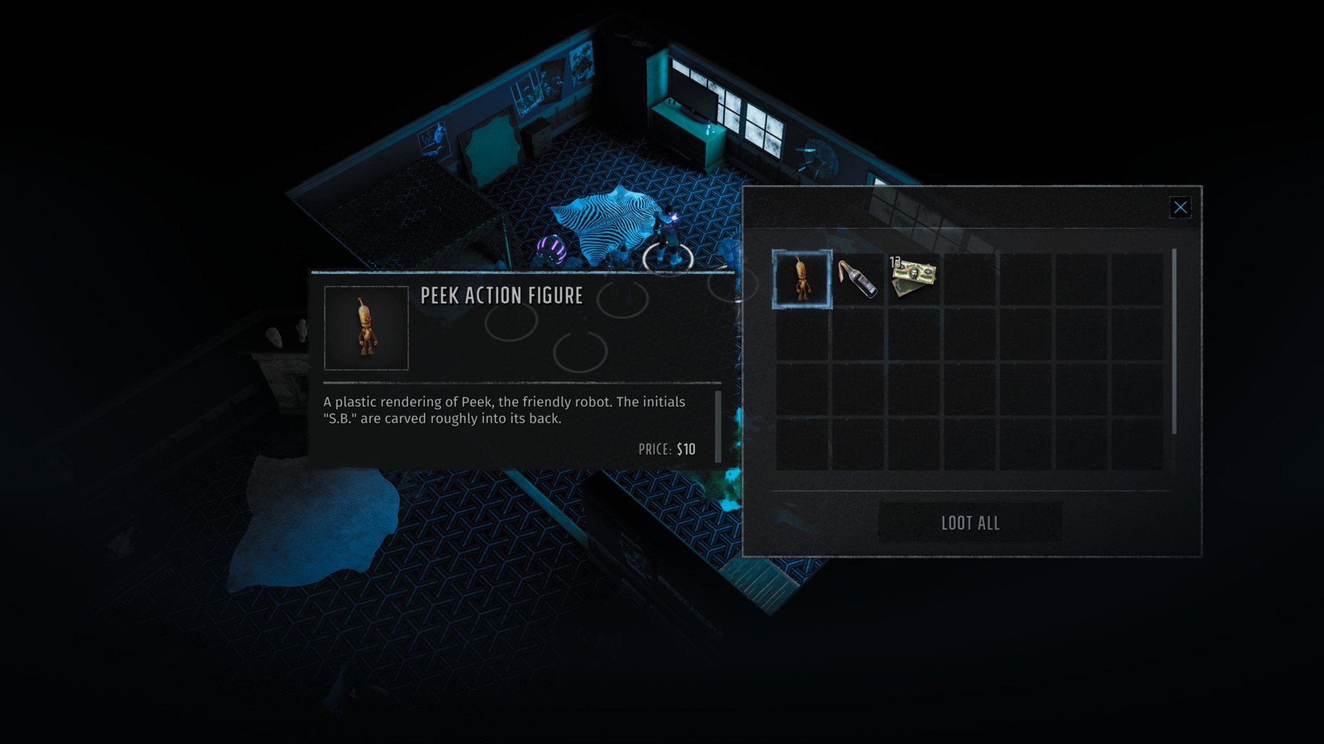 The hallway to the right leads to the bedrooms of the Patriarch’s kids. Victory’s room has a toaster (Toaster Repair 8) and it has a Peek Action Figure. There’s also a Legend of Bazooka Jim skill book (Big Guns +1).