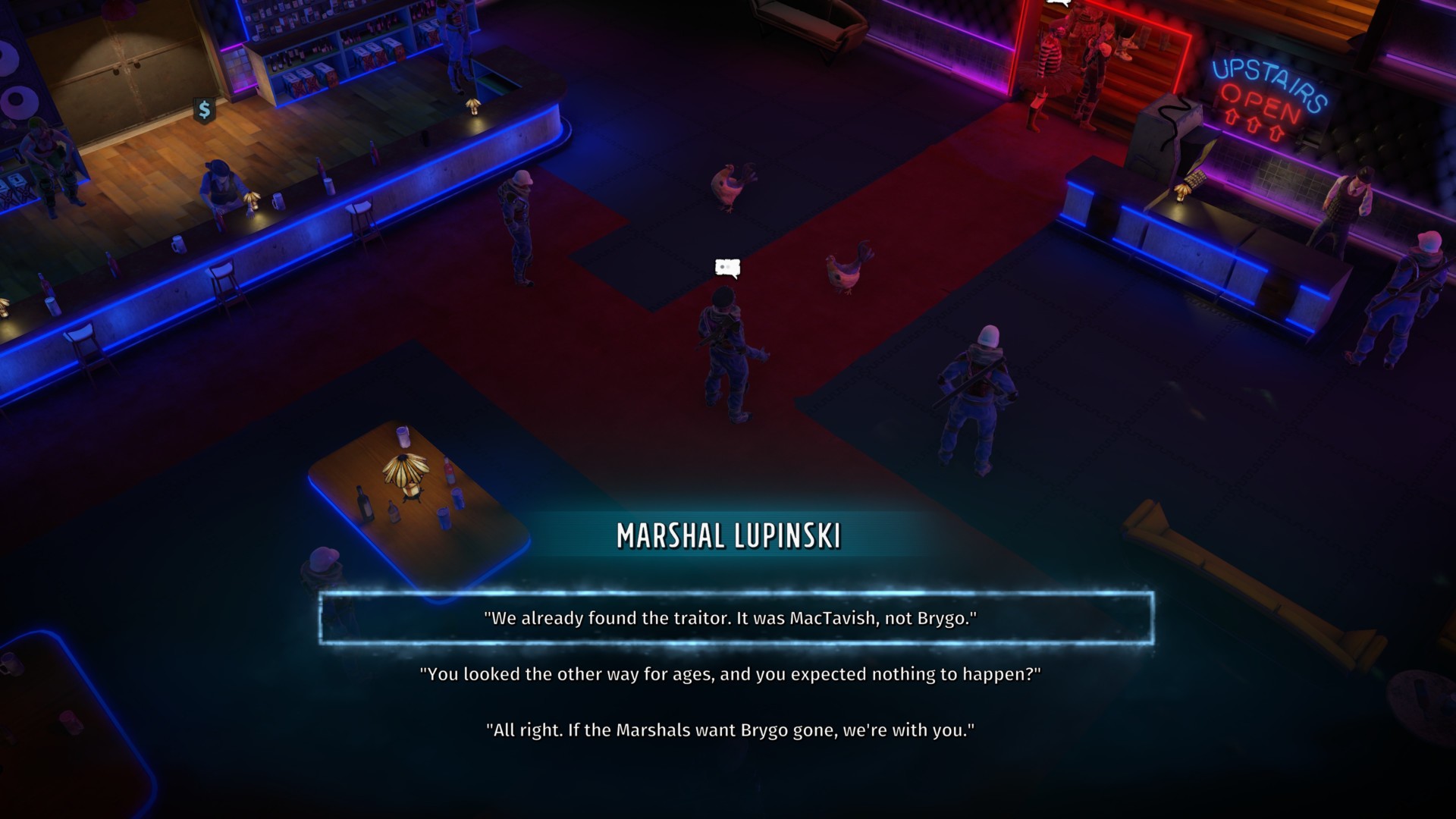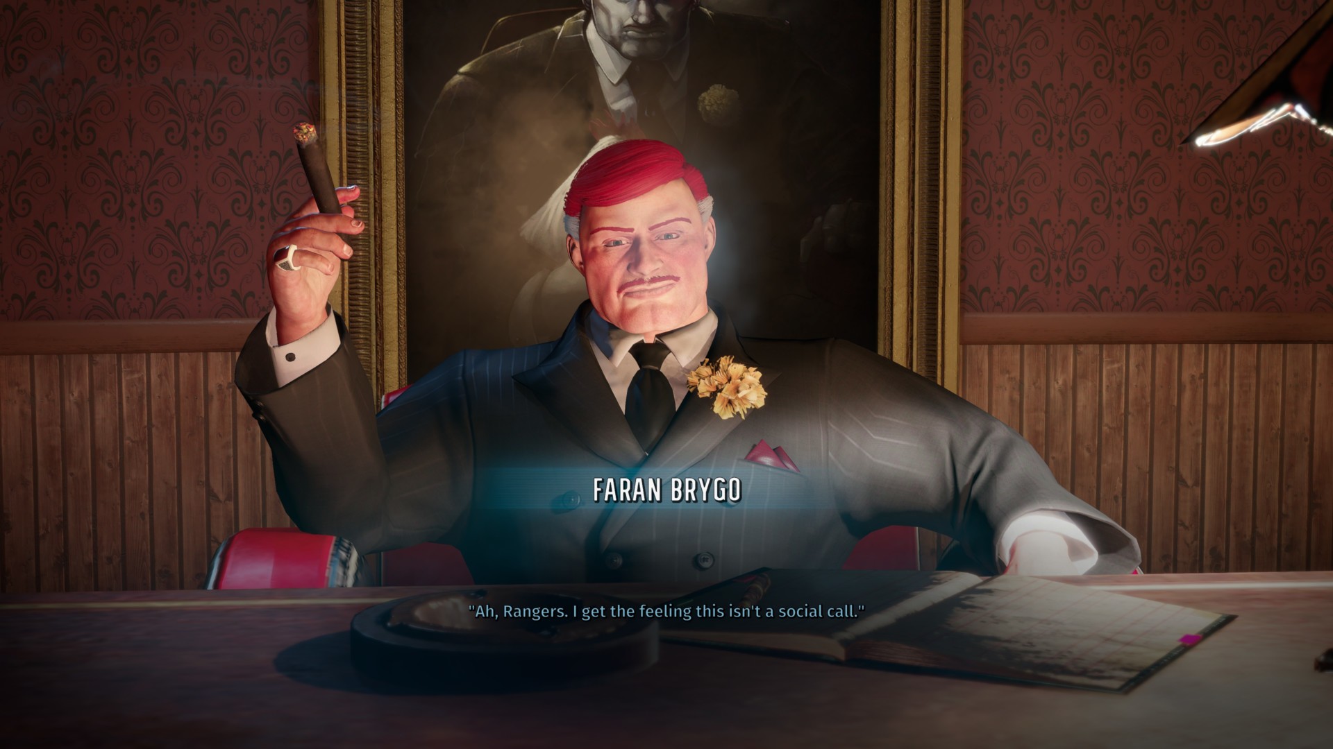 Important: If you don’t arrest Brygo now and you make your way downstairs, Marshal Lupinski will accost you. You’ll either battle Brygo and take him down, or you’ll fight Lupinski and the other marshals. Your decision will affect your reputation with the Patriarch’s Marshals once you speak with Sheriff Daisy later.