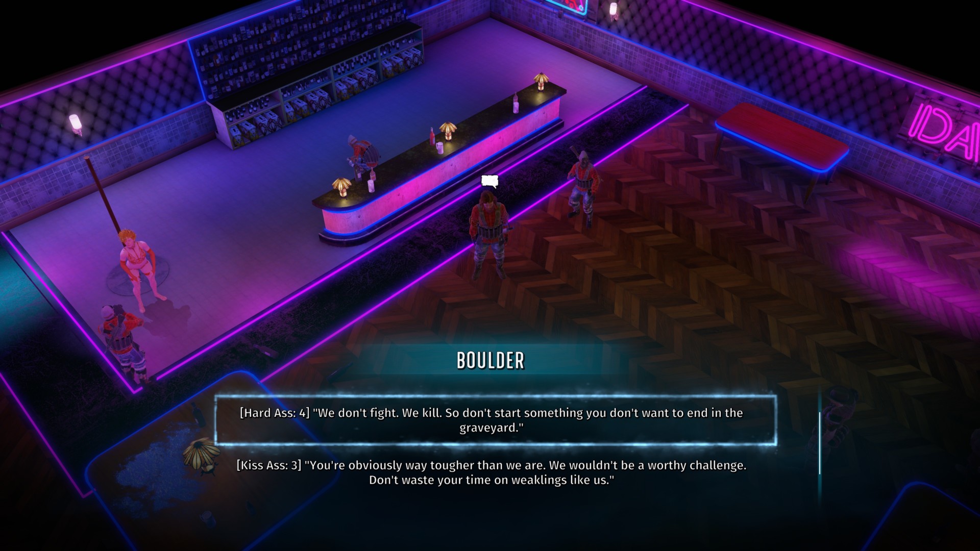 An NPC named Shakes asks you to find his drugs in the “private party” room on the second floor. Inside, you’ll find Boulder and his mercenaries.