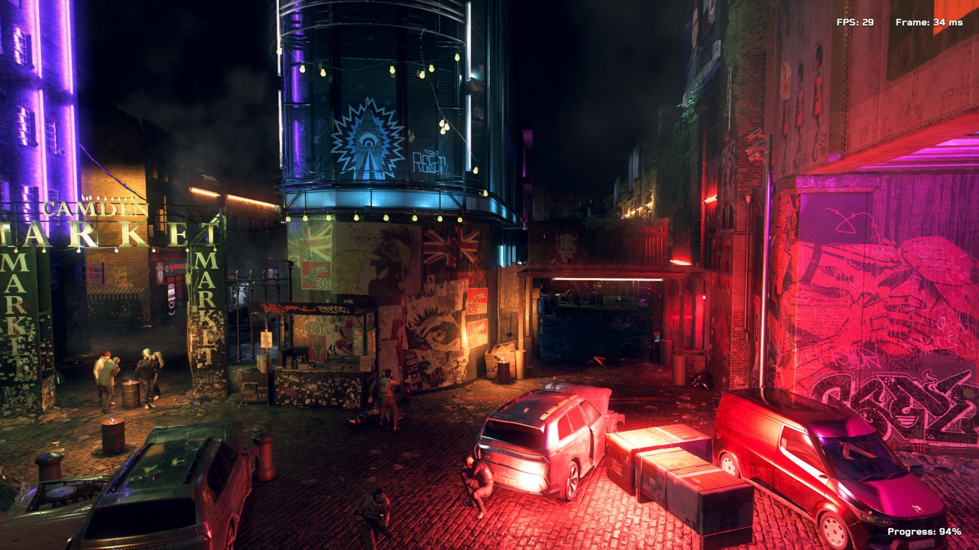 That said, it’s worth noting that the benchmark doesn’t quite push the game to its chaotic limits. The benchmark takes place in a small bit of Camden Market, which has a lot of neon lights and gunfire and explosions, but it’s not quite as taxing as the same happening on a busy street with a few dozen cars.