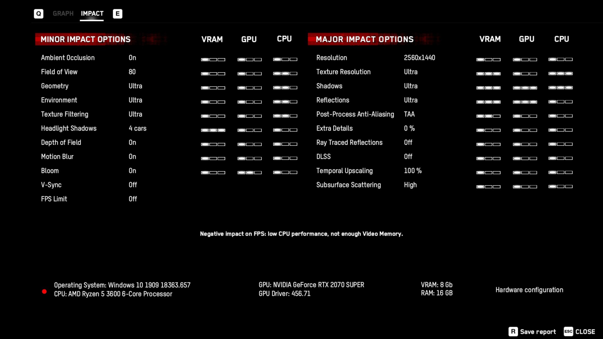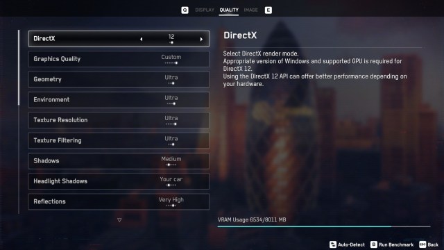 So yep, there’s a lot in there. Excellently, Watch Dogs: Legion’s options give a nice visual indicator of the changes, as well as giving an idea of the impact they’ll have on performance by showing you how power-hungry those settings are on both your CPU and GPU, and your total VRAM load.