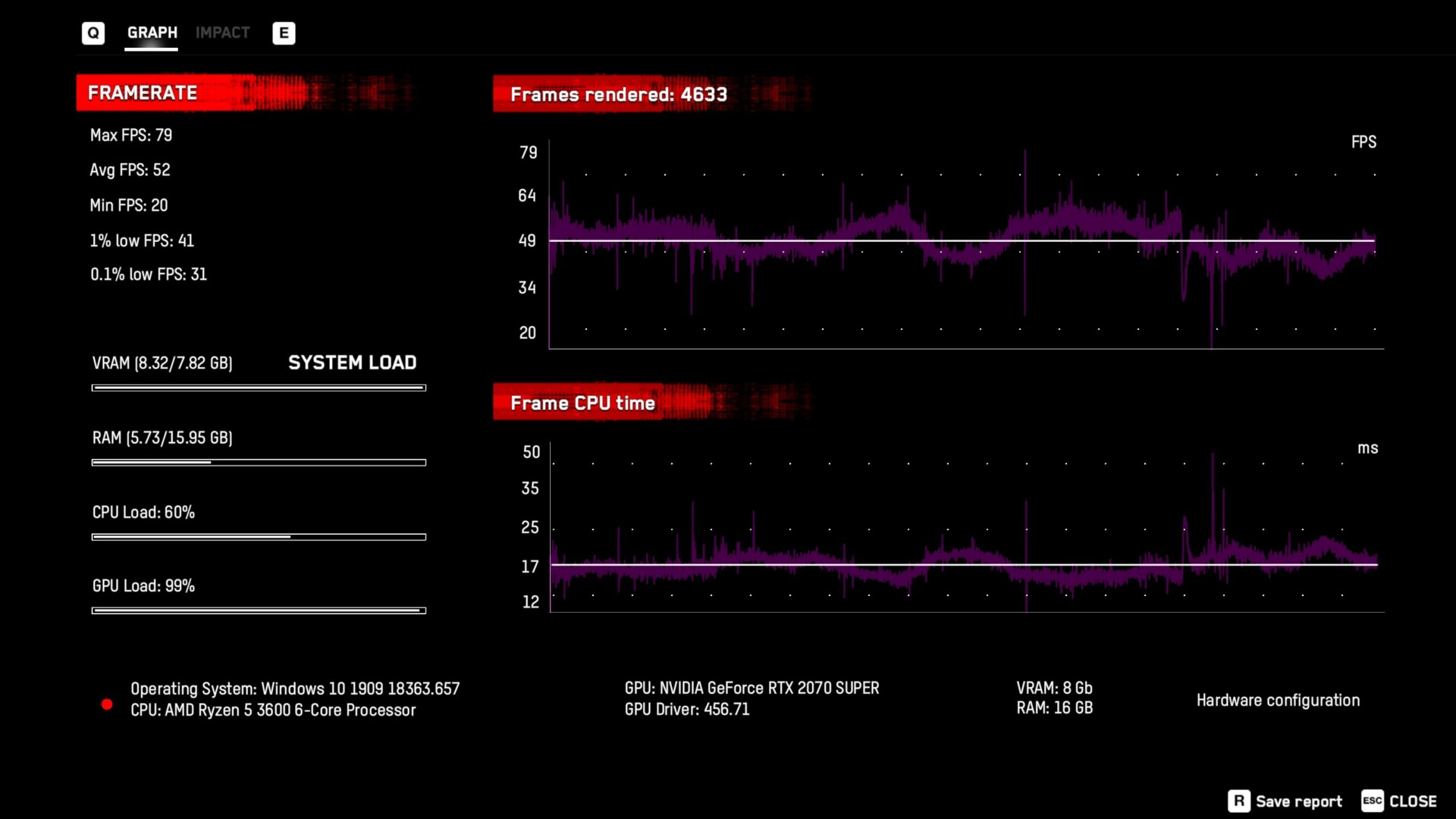 - Everything at max (above ultra preset), RTX and DLSS off: 52 FPS average
