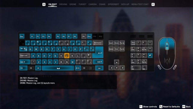 I do want to talk a little bit about Watch Dogs: Legion‘s control bindings, though, because there’s a nifty little feature there. Besides being able to rebind practically everything (going as far as rebinding the keys in the football trick minigame), there’s a nice “virtual keyboard” where you can see exactly what keys are used in what mode, and what every key does. It’s a minor thing, but it’s lovely.