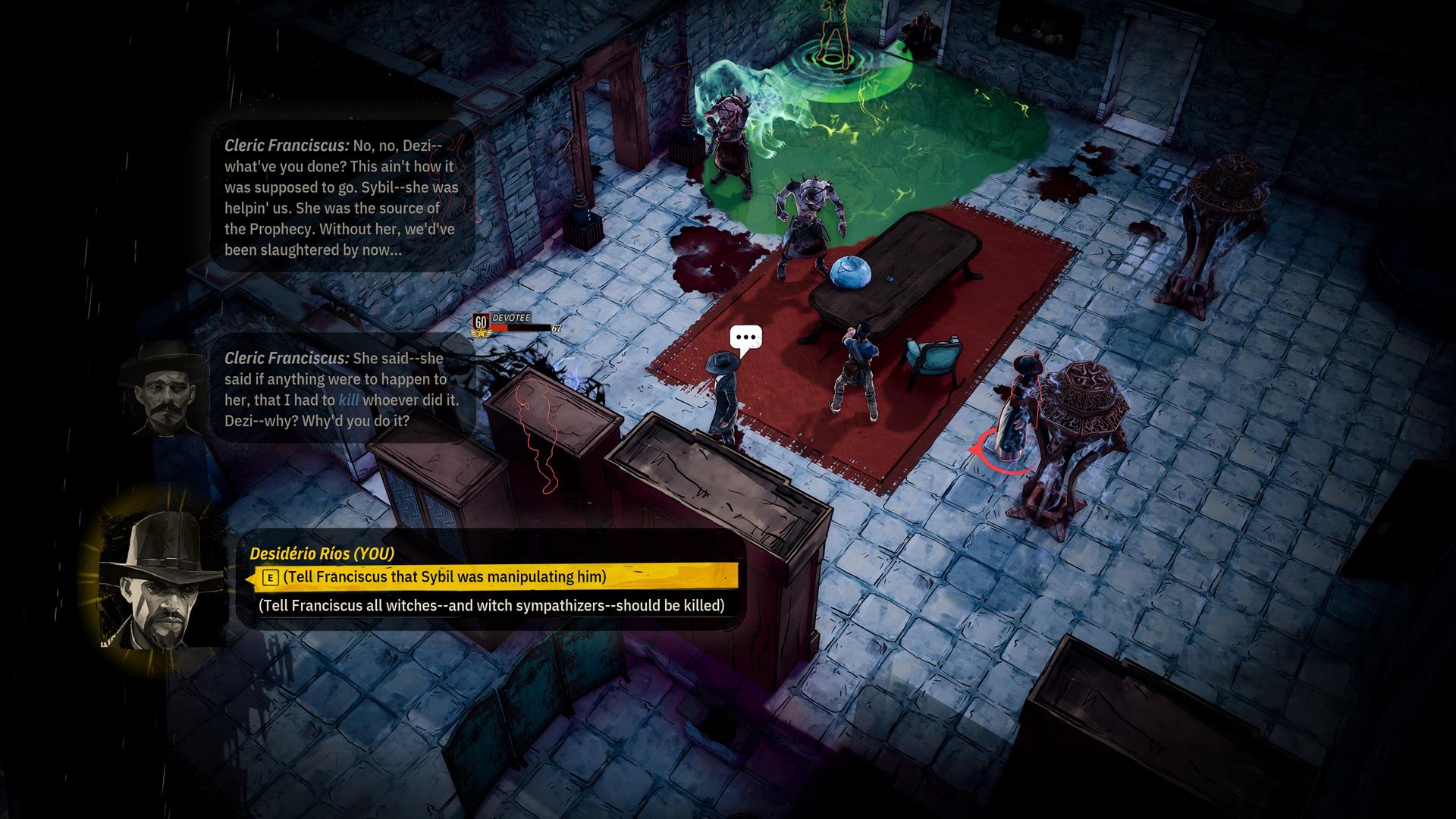 Down below, you’ll meet Sybil Branch. Yes, it looks like Franciscus’ man-beasts are in cahoots with this Oneirist. She claims that there’s a vision where reading the book will lead to your death, but it’s up to you to find out is she’s being honest.