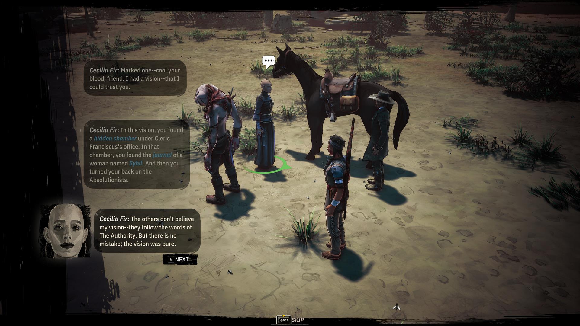 As you progress through the Werewolf journey in Weird West, Cleric Franciscus will tell you about the Wolfsbane Clippings. Apparently, it’s the only way to save your people. However, the moment you travel on the world map, a random encounter will occur. There, an Oneirist named Cecilia Fir will tell you about Sybil’s Journal as a means of ascertaining the truth.