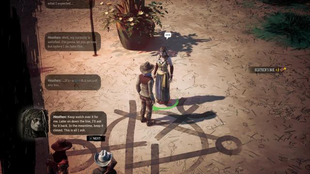 After a short conversation, she’ll give you the Heathen’s Box. She’ll tell you not to open it because she’ll ask for it much later in the campaign. I’ll mention my findings toward the end of this guide, so don’t worry.