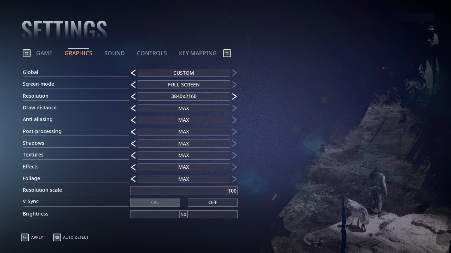 Below, you’ll see the graphics settings that the game has. There are four presets: max, high, medium, and low, and these affect the resolution scale’s slider too.