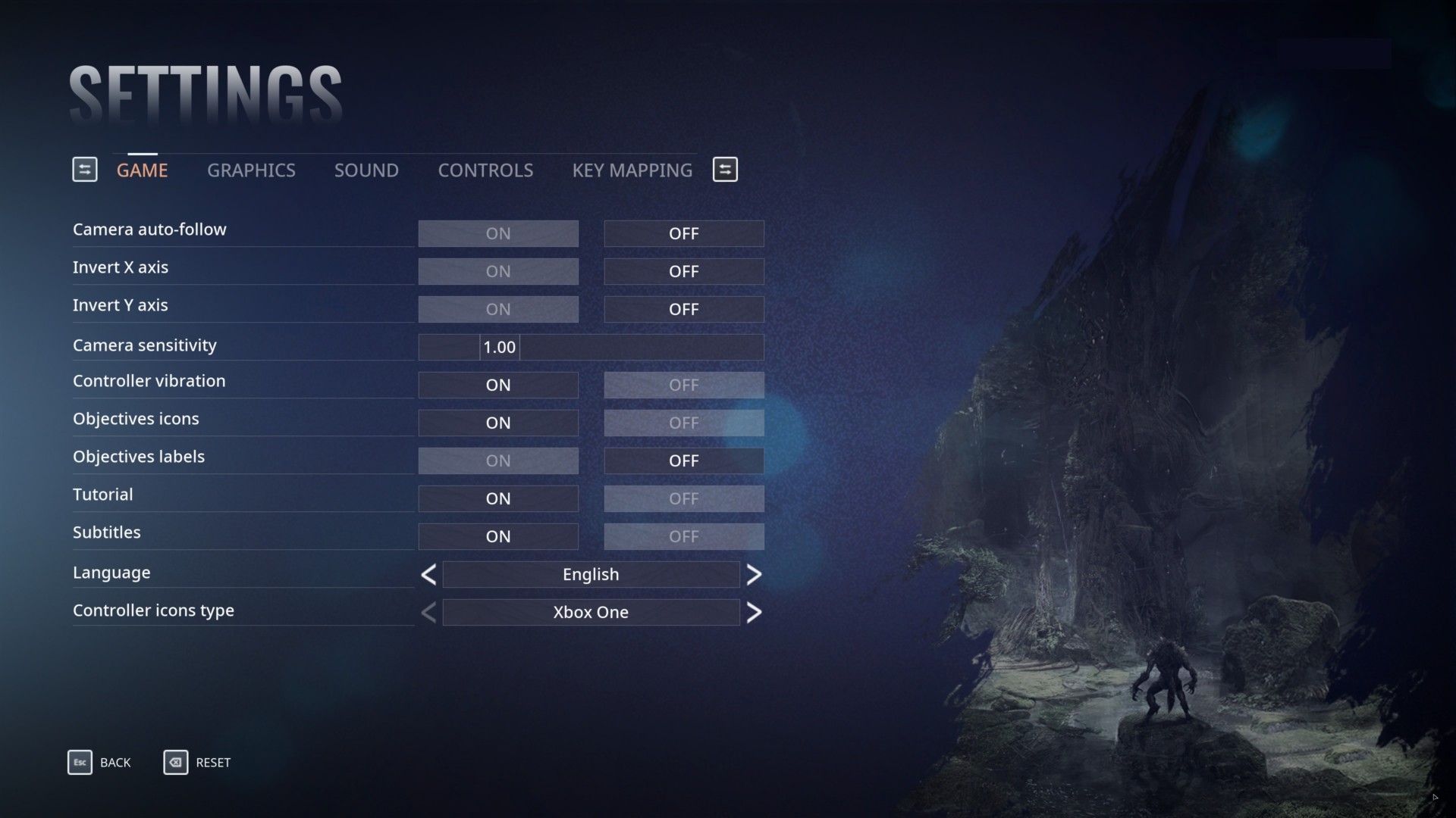 Gameplay and audio settings