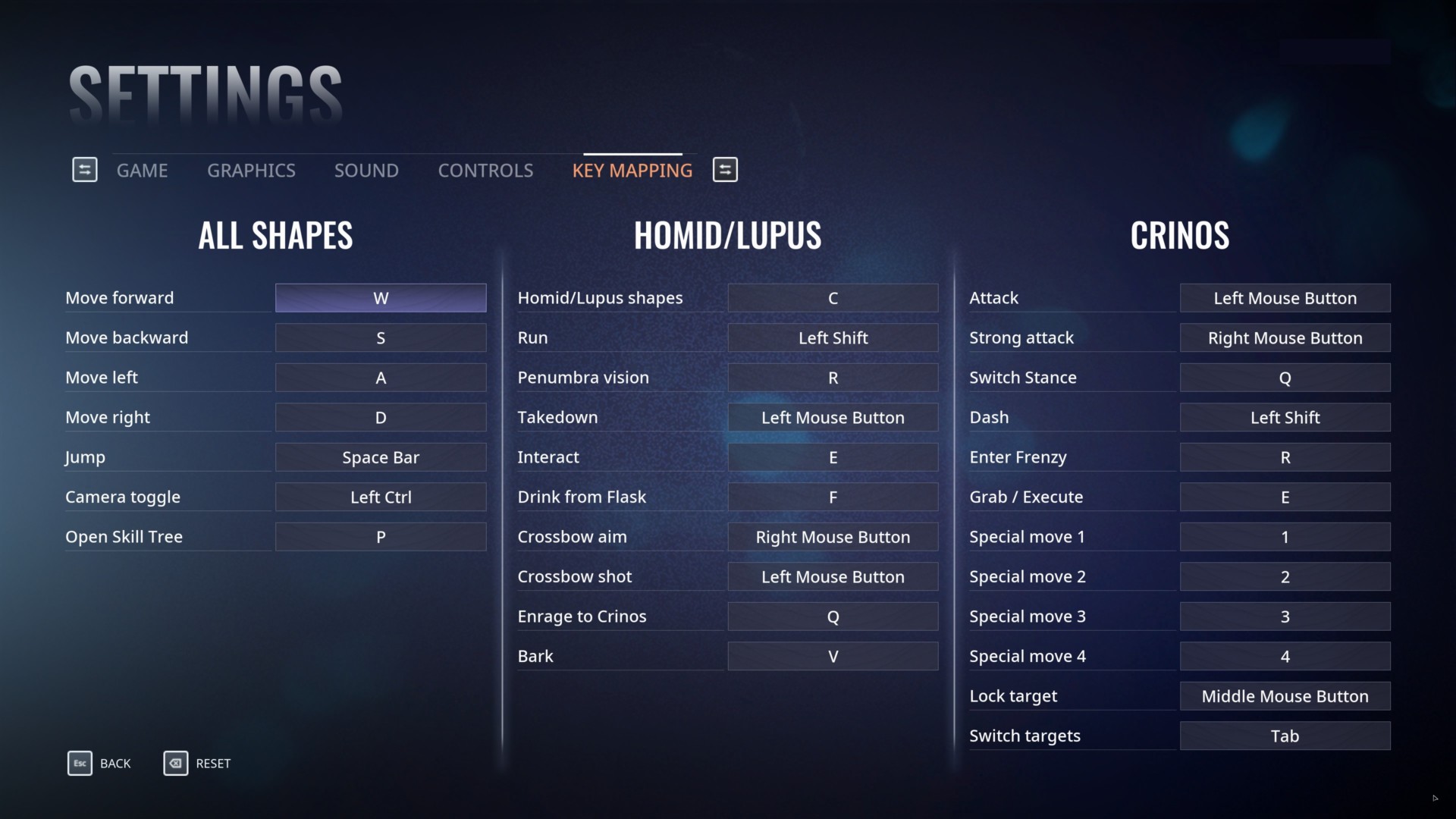 You’ve got the control settings for your keybinds: