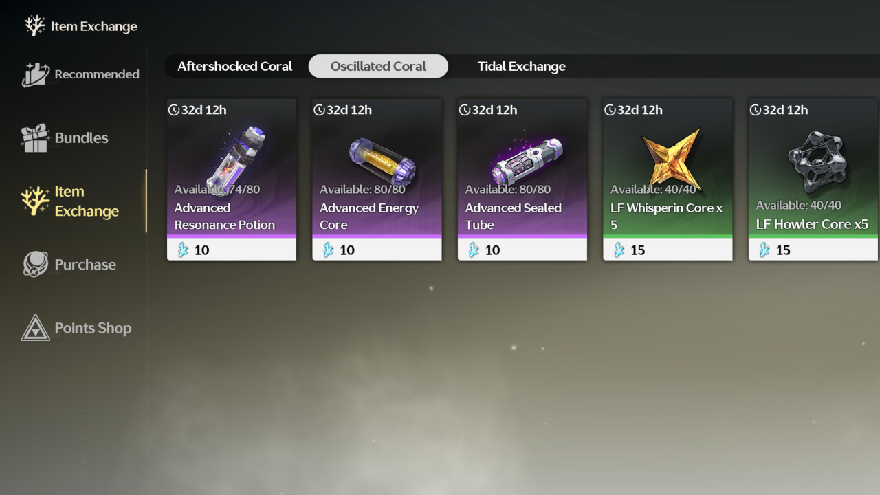 Of the two currencies, Aftershocked Coral is the rarest since you only obtain it by pulling a 4-star or higher item. Oscillated Coral, on the other hand, is rewarded for everything else. You can get the best possible items with Aftershocked Coral, but it may take some time to save up the appropriate amount.