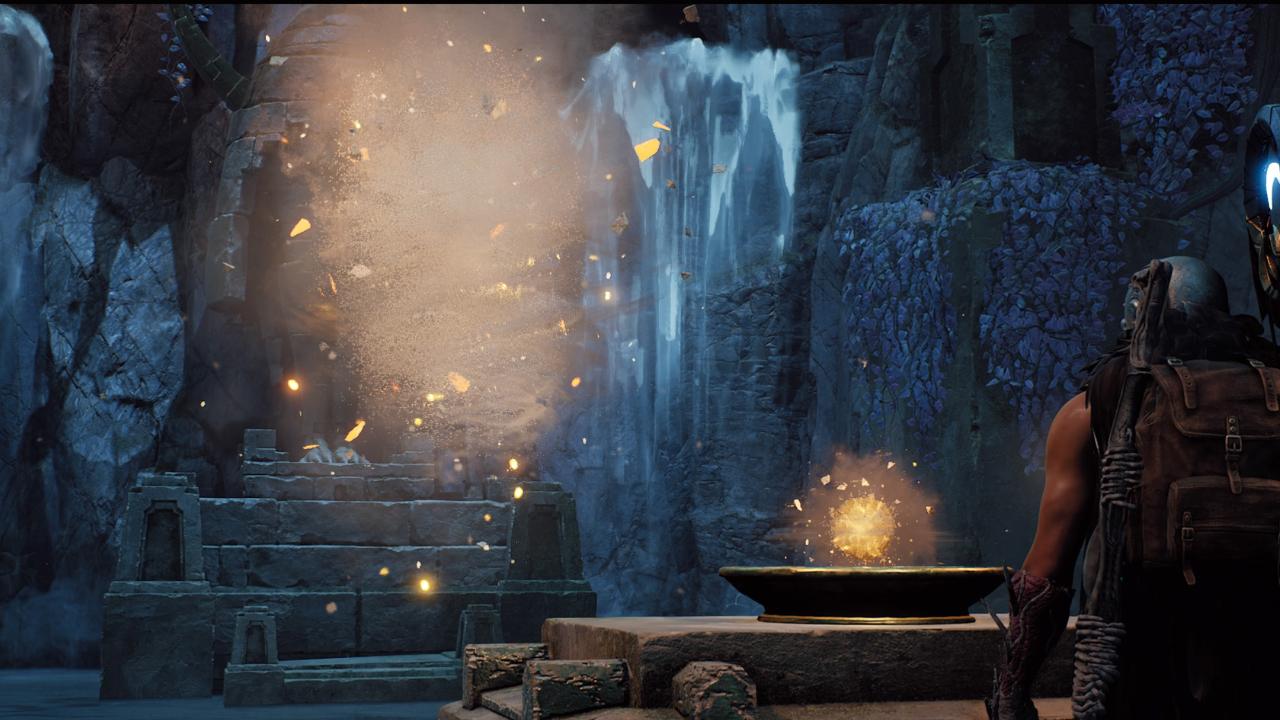 Once you destroy the blockade and the water runs down over the cliffside, it’s time to return to the lever for the statue. Now when you activate the lever, the statue will lower its hands and you can now progress through into the next room. Inside the room is the Cherished Fracture quest item for the bowl in Goddess Rest. Here is what the item looks like: