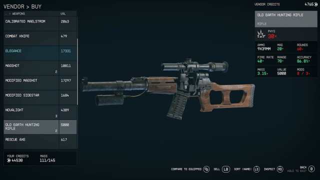 Finding a sniper rifle in Starfield is a pretty hard task if you don’t know where to look for one. There are a few places that you can get one, but the earliest one in-game that I have personally found is in the weapons shop, Rowland Arms, in Akila City. In this shop you can find the sniper rifle with the name “Old Earth Hunting Rifle,” it comes fitted with a suppressor and a decent scope for you to use with it. This is a great gun for your early-game sniper build.