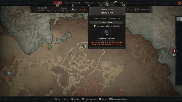 There’s a reason you should complete these Dungeons. Upon beating the requirements in Feral’s Den, you’ll receive ‘Aspect of Quicksand‘, which is useful for any Druid. What does it do exactly? Any damage from Earth Skills will slow enemies. If this Aspect interests you, there’s something you need to do first before entering Feral’s Den.