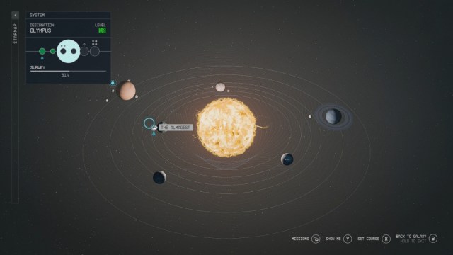 Start by heading to the Olympus system. On the Starmap, you’ll find it to the right a short distance from the Alpha Centauri system, which hosts the planet Jemison and the city of New Atlantis.
