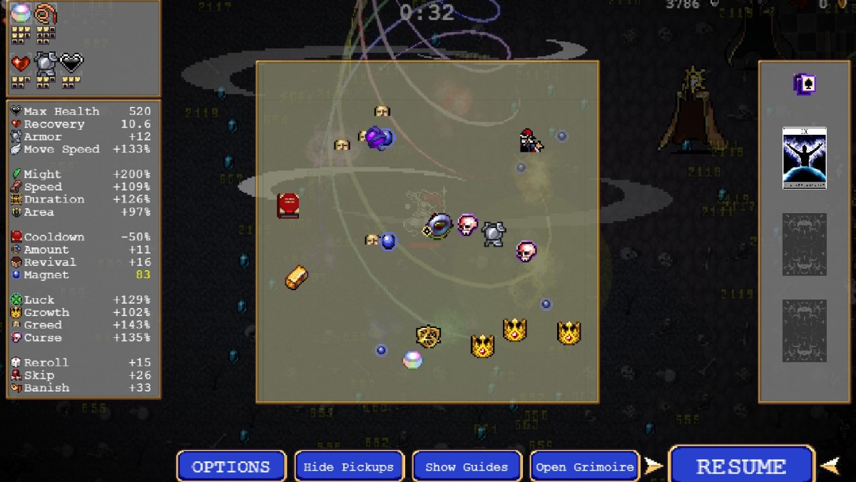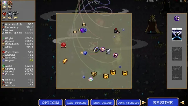 Once you’ve satisfied the above conditions, you’re ready to head to the Golden Egg farming spot. It’s worth noting that, in order to make best use of it, you’ll need a build with a lot of survivability that can deal out big damage as well. For this reason, it’s best to spend a few minutes leveling up and developing your build before you head to the farming spot. Get your key weapons evolved, and fill up on useful passive items. Don’t forget to pick up the Armor and Crown that appear on the right-hand side of the Stage, too.