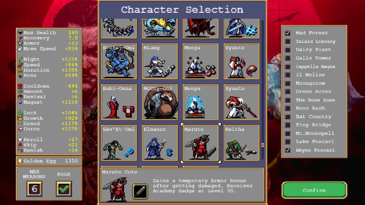 Now that you know where to find the Secret Golden Egg farming spot in Vampire Survivors: Tides of the Foscari DLC, you have access to a fantastic way to power up your favorite Survivors. Though be warned: it can trivialize the game’s difficulty, and even cause it to crash completely, if you push it too far and stockpile too many Eggs on one character.