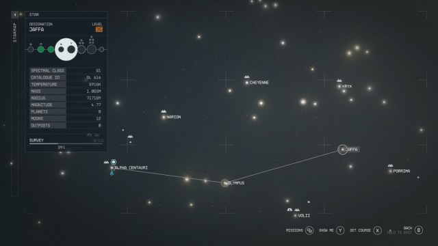 First, find Jaffa system. Helpfully, it is not far from the Alpha Centauri system where your journey begins. I went with the Dream Home trait at the start of the game, so I return to the Olympus system quite frequently. On the Starmap, the Jaffa system is a short distance to its upper right, not quite due south from the Kryx system (see the above screenshot).