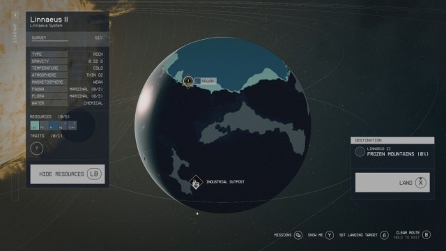 To harvest High-Tensile Spidroin, find a planet with organics and the Frozen Mountains biome. With both conditions met, you can look around to find the Frigid Palm, from which you can harvest the desired resource. One planet that meets those requirements is Linnaeus II in the Linnaeus system. It’s located not far to the right of Alpha Centauri on the Starmap. Unfortunately, you have to access it by way of the Nikola system. The distance is substantial. Depending on your ship, you will likely need to upgrade your Gravity Drive and power it up fully. I got there by unlocking the Astrodynamics skill.