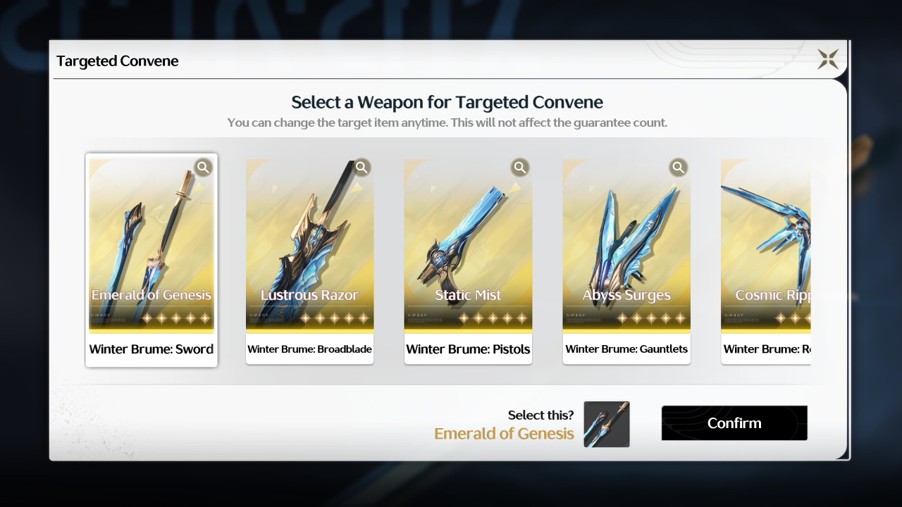 At the end of the day, though, you should really just pick a 5-star weapon that will benefit your favorite character. If you like using Encore, for example, then just pick Cosmic Ripples for her. Don’t worry about the meta all that much, you’ll be much happier that way. These weapons are all fantastic anyway, so there aren’t any incorrect choices.