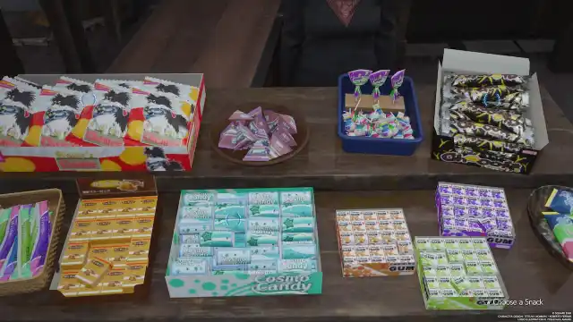 After giving Aerith the yellow Lily pendant, you guys will continue with your date and make your way to the candy merchant. She will ask you to select one candy, which you must then decide on. Similar to selecting the gift, there is zero difference in outcomes, and the dialogue options will remain the same regardless of which candy you pick.