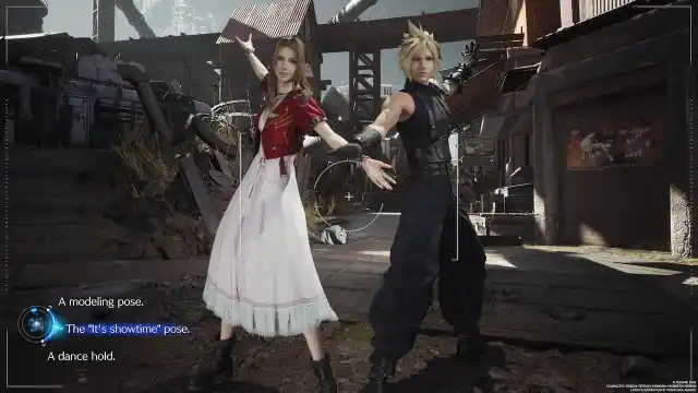 Once again, you get to choose between three options. This time, you select the pose Cloud and Aerith will do for the photoshoot. You can choose between a modeling pose, a “it’s showtime” pose, or a dance hold. The only difference in the outcome is the photo result.