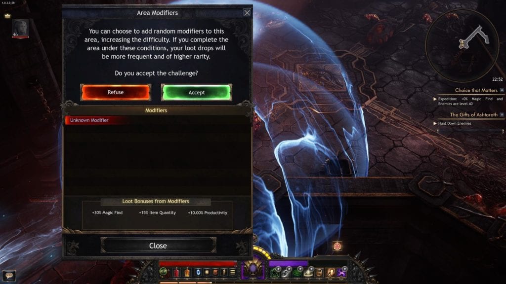 Note: If you cancel the Expedition panel after adding some modifiers, you won’t get your gold back.