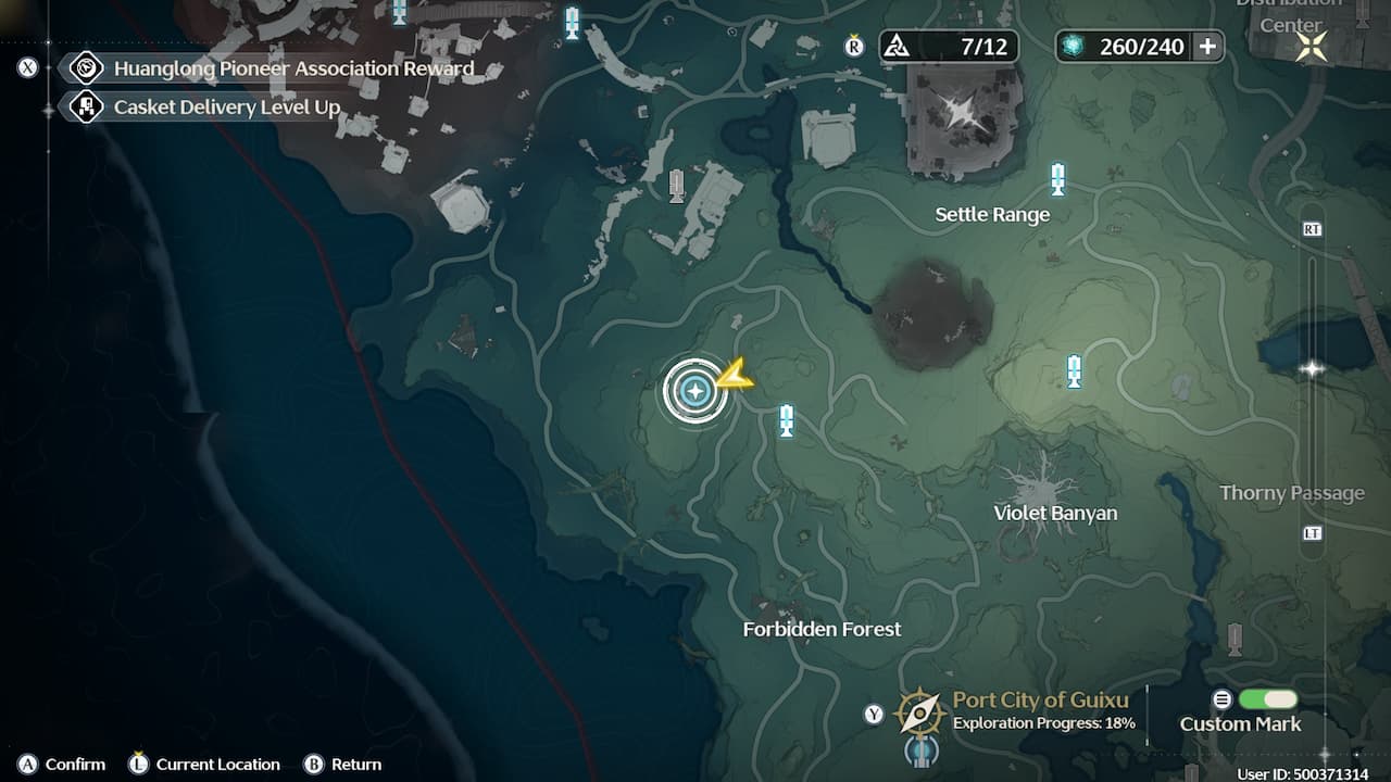 In the northern part of the Dim Forest on top of a cliff, you’ll find a locked chest sitting next to a powered-down robot. We’ve provided a picture of the map to help you along your way. Try not to get distracted from all the Blobflys on your way there.