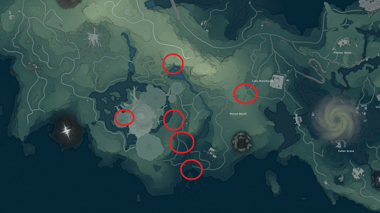 Much like the Heron, the Chasrazor is more scattered around. However, three farming locations are near each other, while the fourth is a little more out there.