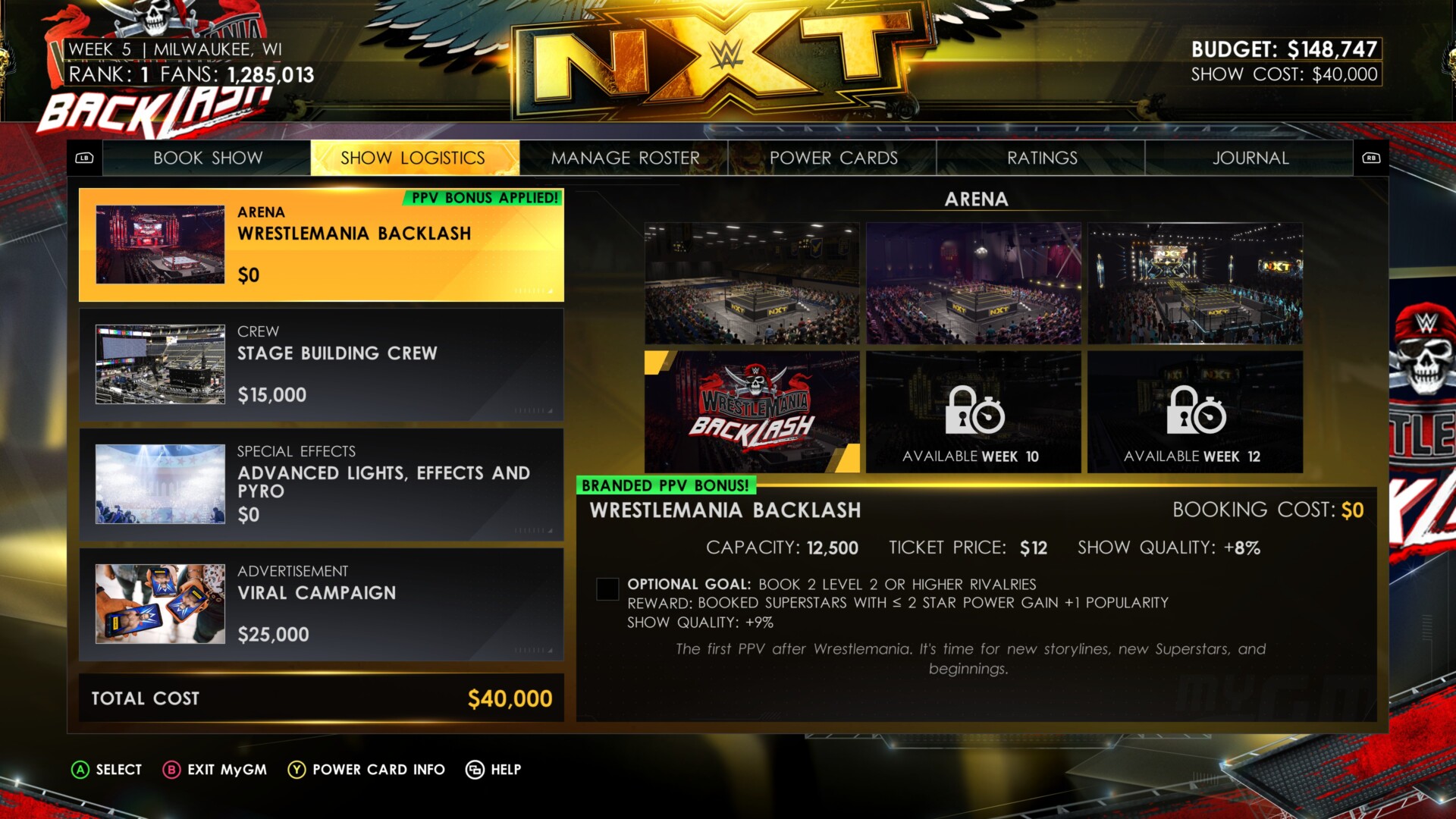 Once you’re ready, you can book your shows in MyGM mode. You’ll have regular shows for four weeks, followed by a PPV: