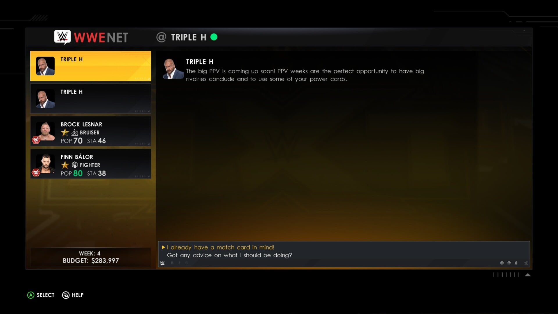 As for WWENet, this is where you’ll see additional messages from Triple H or various superstars once a show has ended. Wrestlers might suggest forming a tag team with a buddy, getting a title shot opportunity, or seeing themselves in the main event. Likewise, you might be asked to do a GM Interference on behalf of a wrestler (which you can toggle when booking a match). Keeping your promises will increase a superstar’s morale. Conversely, declining their suggestion or outright forgetting to act on it will cause a drop.