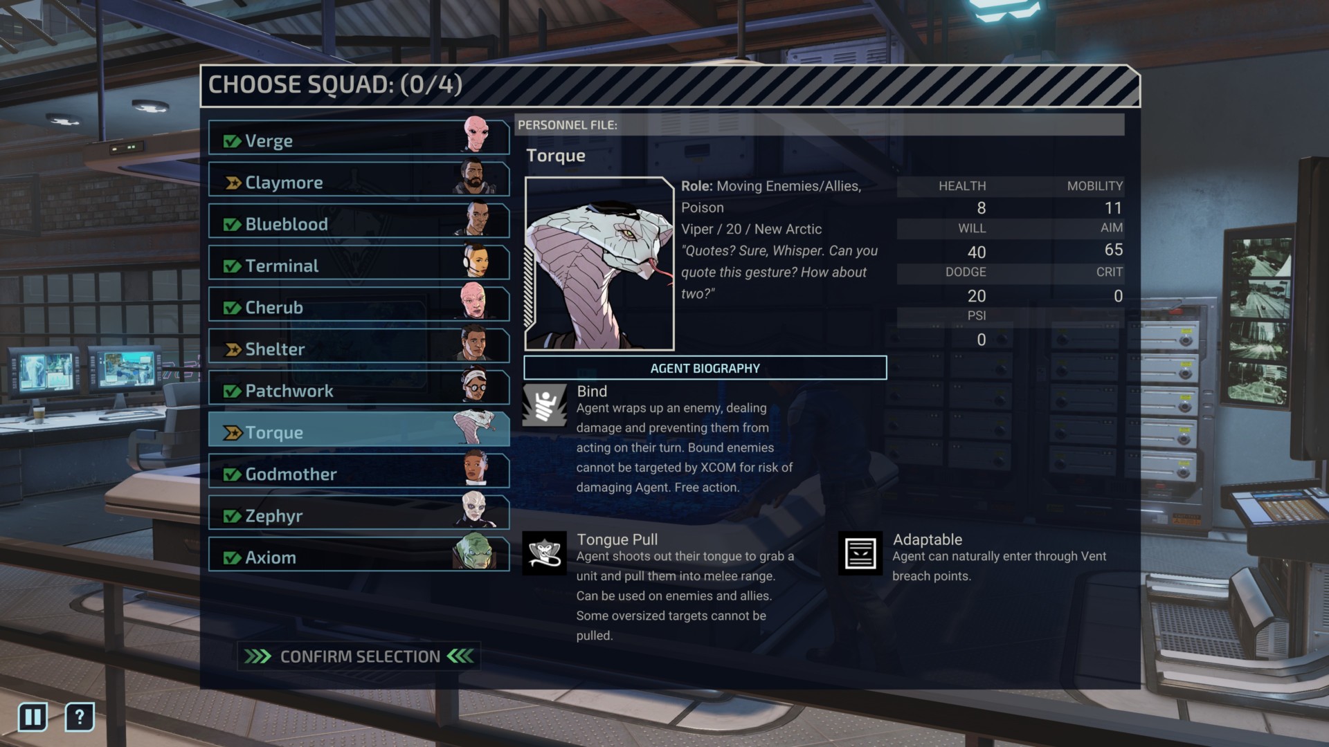 Cherub is right there with you once you start XCOM: Chimera Squad‘s campaign and he’ll provide you with tanking benefits. You’ll probably keep him around for a lengthy period — until you get Zephyr, that is. She can already debuff enemies while tanking hits consistently, which makes using Cherub almost moot.