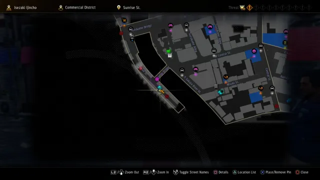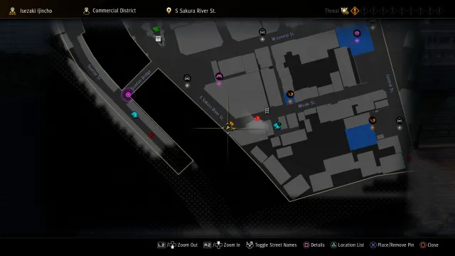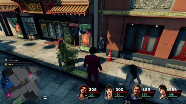We’re now getting into “Oh, that’s kind of a dick move” territory. It gets worse, don’t worry. The Survive Bar is a regular hangout for Ichi and the gang, found in the Bar District. No map here because, honestly, you’ll be there a lot anyway. If you really need directions, it’s the building with planters outside it just west of the taxi in the Bar District.