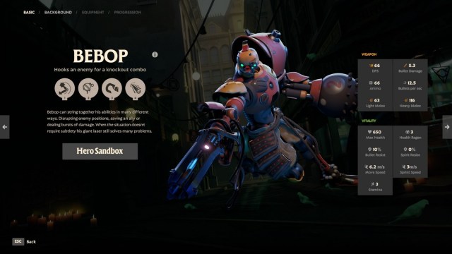 Bebop – A close-range bruiser who can pull an enemy in and punches them into more danger. Pudge, anyone?