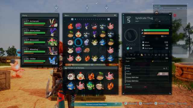 Yes, it is inhumane and probably I’ll have to speak to a priest or a therapist after my time in Palworld, but apart from not having a particular logo while managing the Pals in the Pal Box, the Syndicate Thug that I captured acts exactly like any other Pal. You can summon him, you can give him orders, you can make him fight with Pals that are ten times his size, and, yes! You can actually pet him in what will only be described as an act of ultimate humiliation.