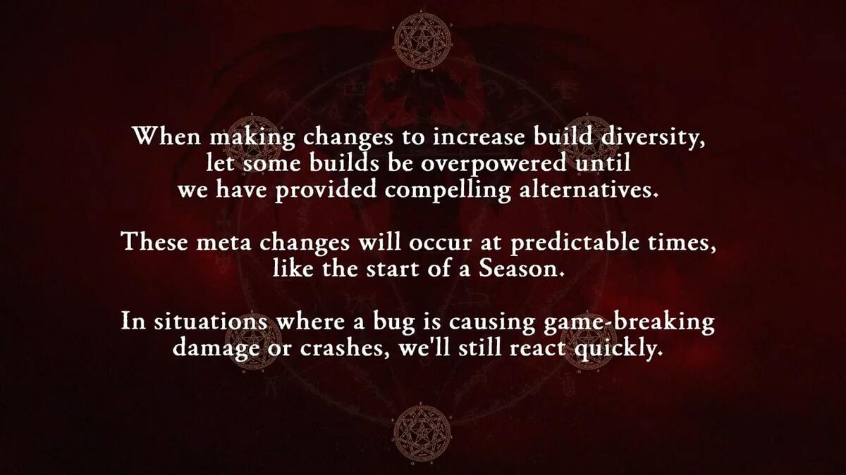 When talking about their mission statement, Blizzard confirmed that they will continue to fix bugs that egregiously create broken builds as we saw with Sorcerer and Barbarian builds in the launch version of Diablo 4. They will also continue to take the opportunity of a new season to switch up the meta of classes and builds.