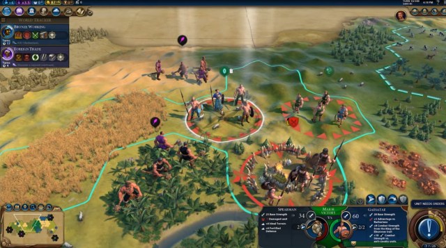 As for Ambiorix, his leader ability is called “King of the Eburones.” Melee, anti-cav, and ranged units gain +2 combat strength for every adjacent military unit. Likewise, any non-civilian unit you train gives culture equal to 20% of its cost. It’s like a variation of Gorgo’s Thermopylae ability, except you’re already gaining culture just by training your troops.
